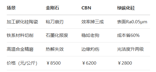 在山東淄博某精密機械加工車間,張師傅正用砂輪打磨航空發動機葉片。火花飛濺中,他指著手中泛著淡綠色光澤的砂輪說:"這批新進的···